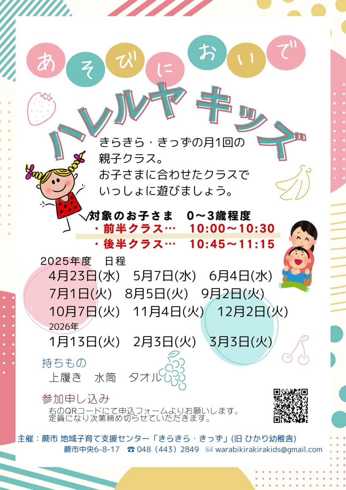ウェルネスタッチケア®(2025年) 2025 4/14 お知らせ お知らせ 子育てきらきら広場(2025年) 10月お誕生日会 関連記事 預かり保育(2026年) 2026年4月1日 ウェルネス・タッチケア(2026年) 2026年4月1日 子育てきらきら広場(2026年) 2026年4月1日 あそびにおいで、ハレルヤキッズ(2026年) 2026年4月1日 一時預かり保育 2025年9月9日 10月お誕生日会 2025年9月9日 子育てきらきら広場(2025年) 2025年4月13日 ハレルヤキッズ(2025年) 2025年4月13日